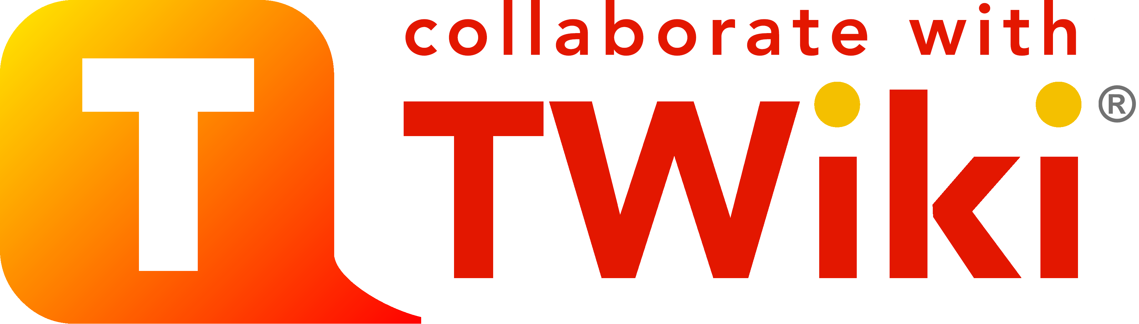 The official TWiki logo is a big "T" in a speech bubble conveying "working together", and has a "collaborate with TWiki" tag line.